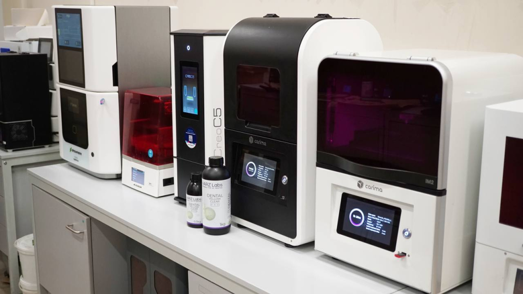 В основе статических навигационных систем лежат иные технологические подходы. Для изготовления хирургических шаблонов здесь применяются методы аддитивного производства, такие как стереолитография (SLA) — разновидность быстрого прототипирования или трёхмерной печати. Этот метод позволяет создавать твёрдые трёхмерные объекты послойным синтезом фотополимерной смолы под воздействием лазера. Полученные модели с высокой точностью воспроизводят анатомию челюстей.