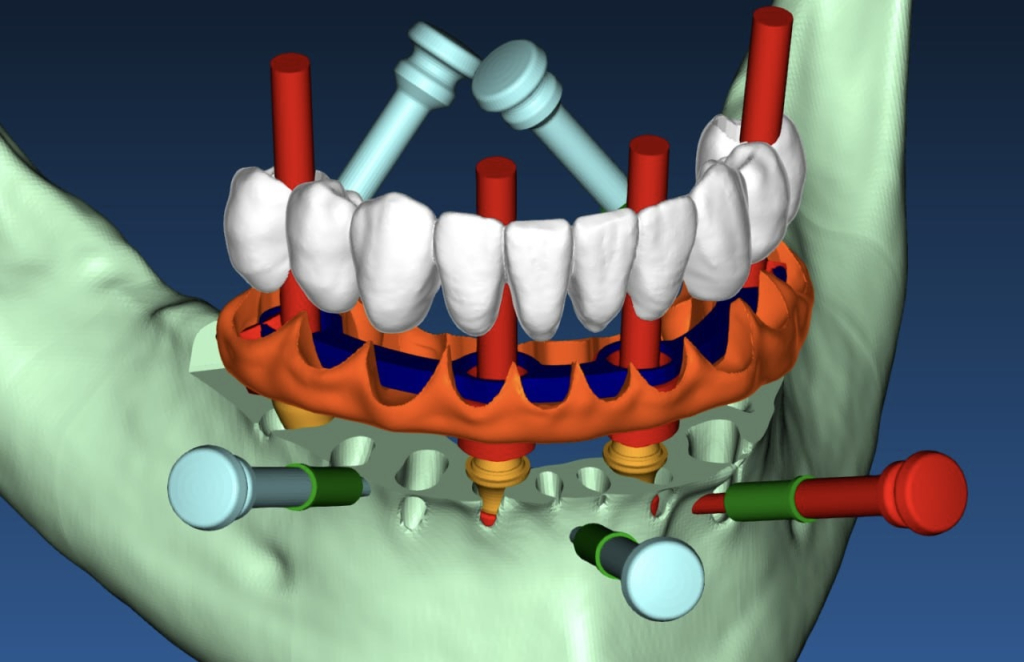 Динамическая навигационная хирургия представляет собой современный метод контроля положения имплантата. Процесс начинается с импорта данных конусно- лучевой компьютерной томографии (КЛКТ) в специализированное программное обеспечение. Для реализации хирургического плана и наведения в реальном времени применяют навигационные устройства с оптической системой слежения.